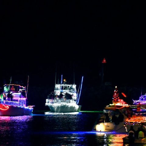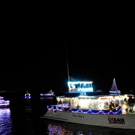 The parade began at the harbor’s entrance and went past Dana Wharf down to Waterman’s Restaurant and turned around, heading back past Dana Wharf and into the harbor’s inner channel and to the harbor bridge. There they turned around again and headed past Wind & Sea Restaurant and the Harbor Patrol dock, turning toward the harbor’s outer channel. From there the boats traveled to the Ocean Institute and through the East Basin to the bridge and then headed back for another loop around.