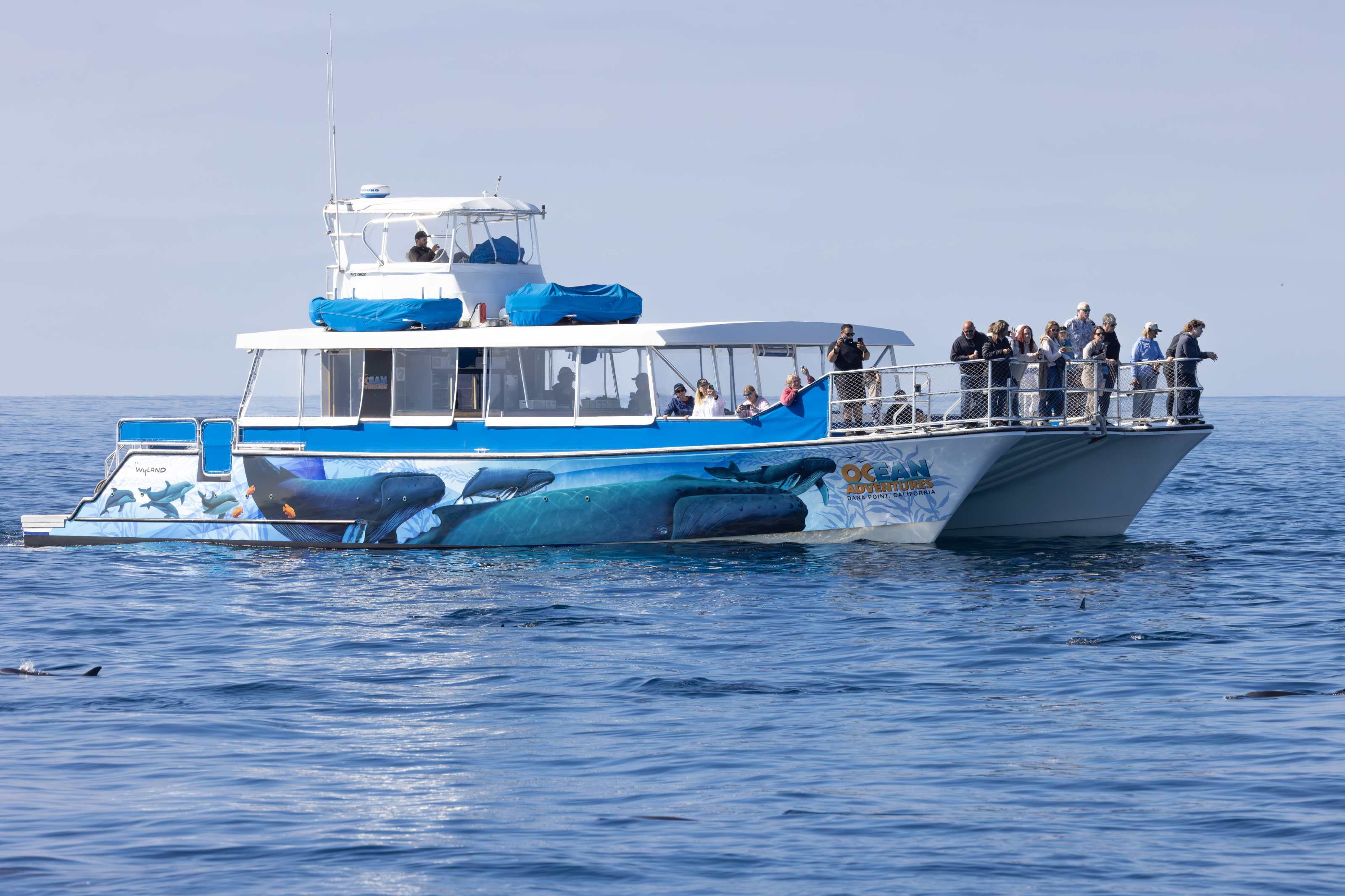 Dana Wharf’s newest vessel is the 63-foot catamaran Ocean Adventures, which comfortably holds up to 59 passengers. Dana Wharf’s catamaran was licensed by the U.S. Coast Guard to hold 59 passengers and is the only vessel of its kind to be re-certified from 49 to 59 passengers. This luxury vessel was built exclusively for Dana Wharf!
